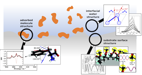 Our work primarily revolves around sum frequency generation spectroscopy, along with Raman and infrared spectroscopy.